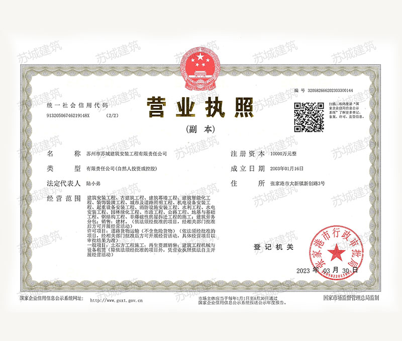 蘇州市蘇城建筑安裝工程有限責(zé)任公司,擁有主項(xiàng)建筑工程施工總承包一級資質(zhì),增項(xiàng)市政公用工程施工總承包二級資質(zhì)和建筑裝修